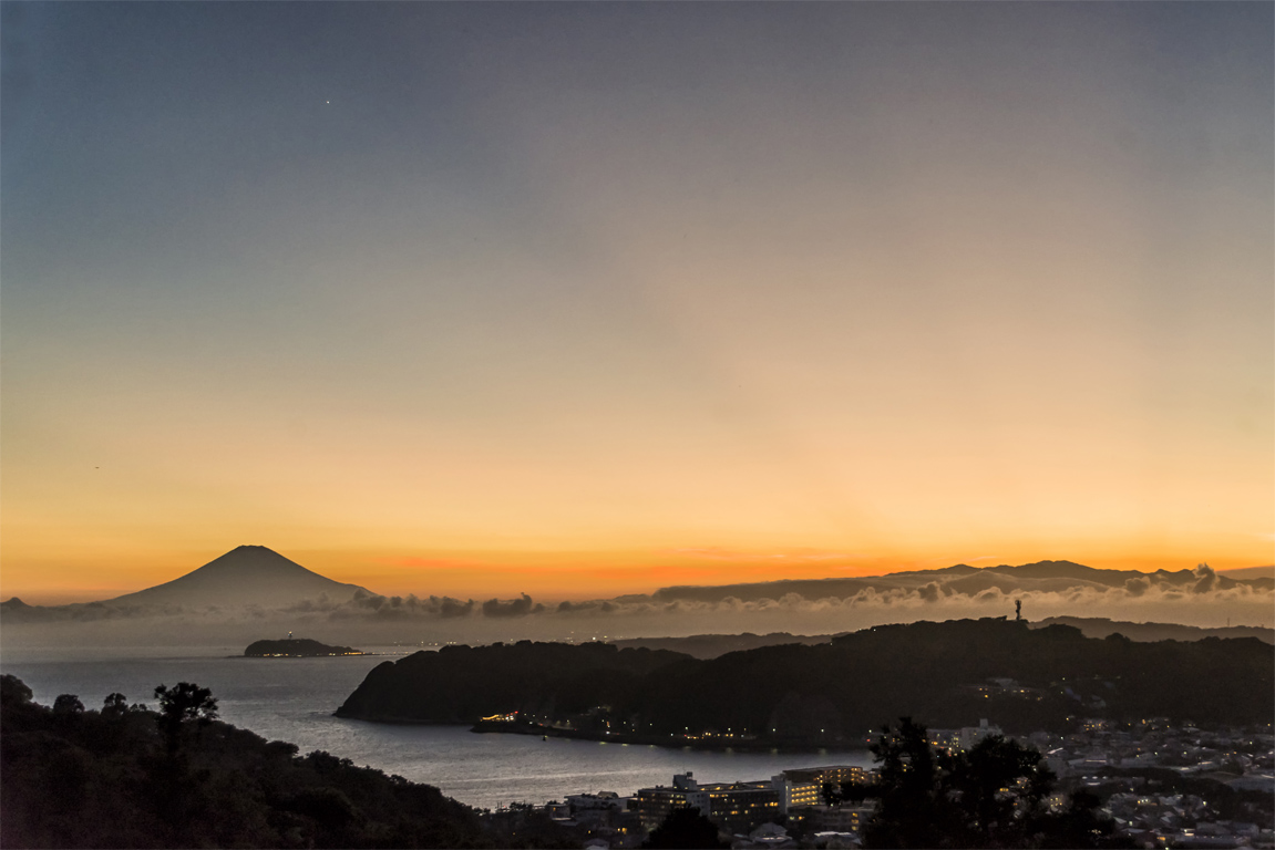 | 3.1 湘南・梅雨明け後の夕景・・・相模湾越の落日風景です |