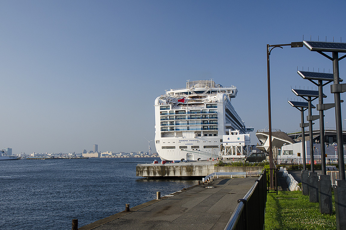 猛暑が続く7月、写友と横浜大桟橋へ大型客船「ダイヤモンドプリンセス号」の出港風景を撮ろうと行ってきました。あいにく入港が遅れたため出港が夜にずれ込み、出港風景は撮ることが出来ませんでした。しかし、海風に吹かれ酷暑もやわらぎ久しぶりの横浜の港湾風景を楽しむことが出来ました。