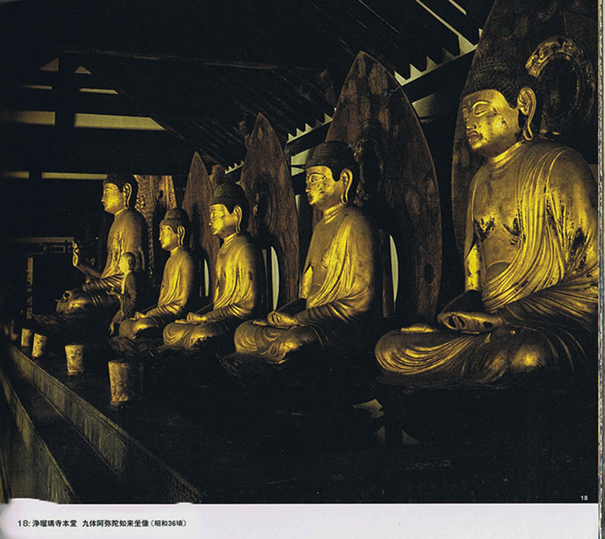 | 写真3.4 本堂に安置されている木造阿弥陀如来座像9体(国宝) (撮影禁止のため写真界の巨匠:土門拳撮影の写真より引用) |