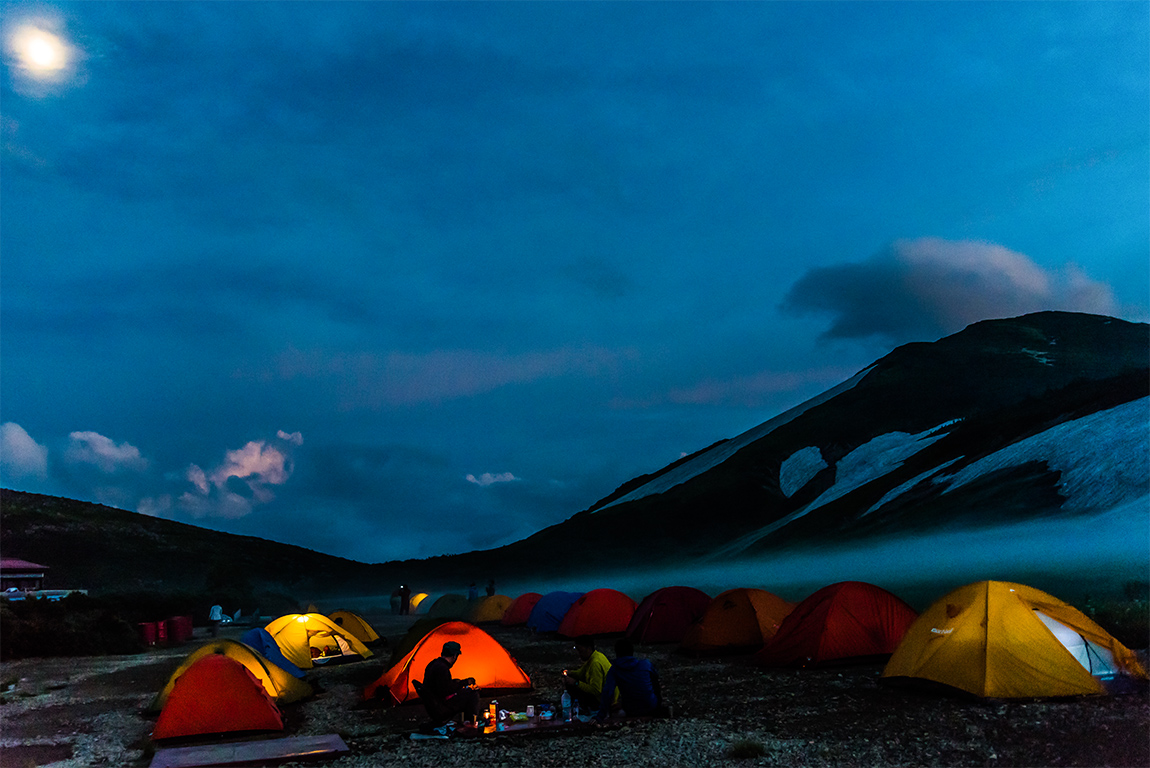 ・第3日目: 早朝星空撮影と明け行く白馬大池撮影、その後白馬大池山荘(2366m)--雷鳥坂--小蓮華山(2769m)--(稜線撮影)--白 馬大池、 夕暮れの白馬大池周辺撮影、 白馬大池山荘泊