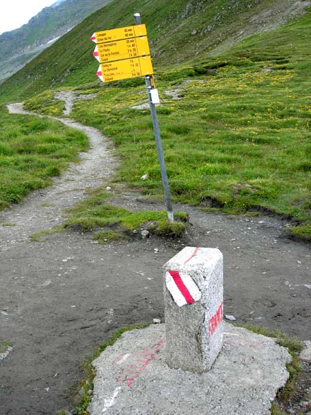 @シャモニ・・・コンタミン村(1067m)出発・・・ラ・バルムの小屋(1706m)泊 A・・・ボンノムのコル・・・フ−ルのコル(2665m)・・・レ・モッテの小屋(1864m)泊 B・・・セイニュのコル(2516m)・・・ベニの谷・・・エリザベッタ小屋(2258m)泊 C・・・ミャ−ジュ氷河出会い・・・シュクル−イのコル(2430m)・・・ク−ルメイユ−ル泊 D・・・エレナの小屋泊 E・・・フェレのコル・・・シャンペ(1468m)泊 F・・・フォルクラ峠・・・トリアン(1270m)泊 G・・・バルムのコル(2191m)・・・ル・トウ−ル(1462m)・・・シャモニに到着(泊)H