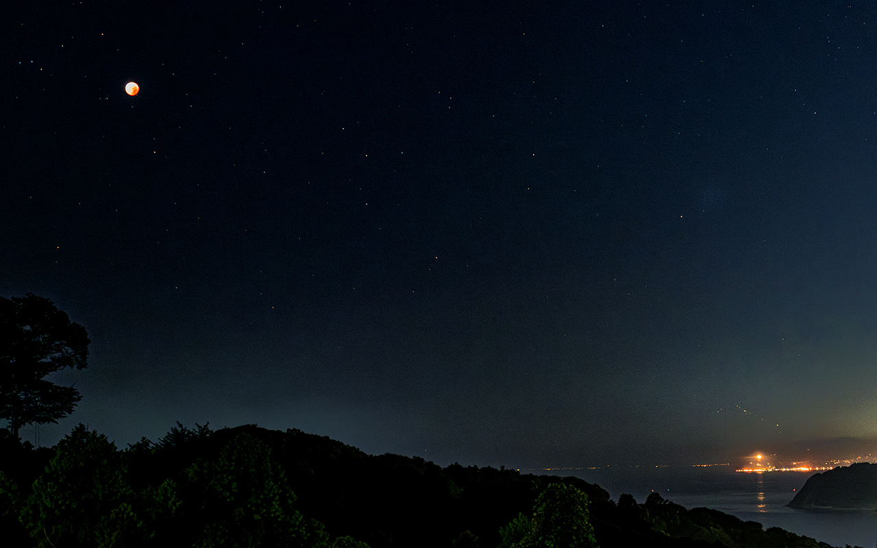 ①皆既月食:逗子より皆既月食下の湘南の海風景、・・・2025年9月8日