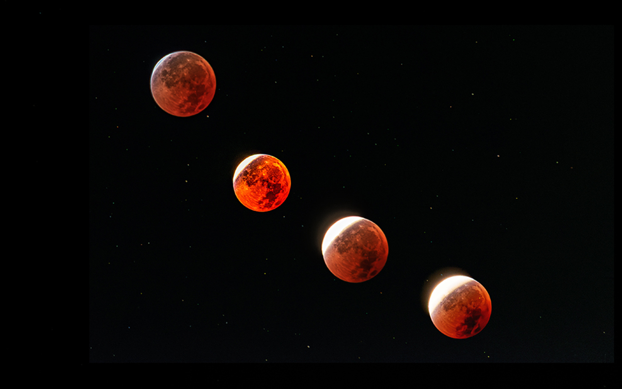 | 写真3:皆既月食の変化・・・午前3時50分~4時10分 | ||