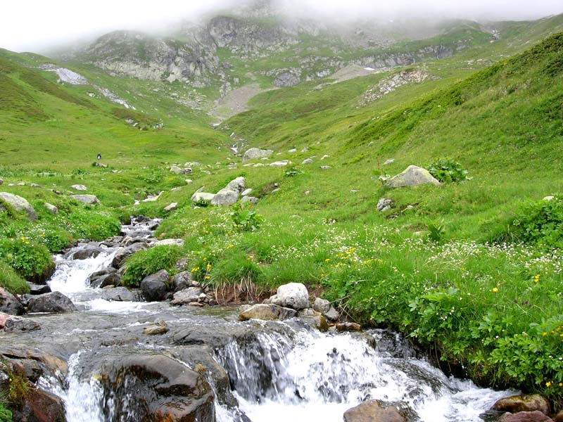 (コルはモンブラン山塊が見渡せる絶好の場所・・・しかし、天候悪く昨日に続きみぞれ混じりの雹に降られ視界利かず) |
