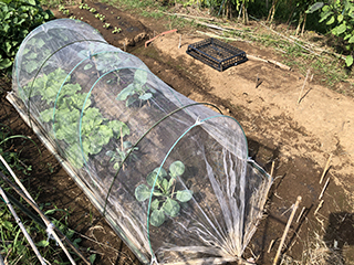 | 防鳥ネット設置 | トウモロコシ畝のピノガール | |