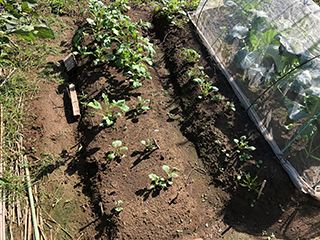 秋冬野菜の一部がまだ栽培中ですが空いた畝より春夏野菜の畝ずくりをスタートさせました。第2菜園も3年目、少し広くなりましたが輪作を避けるには手狭でいろいろ工夫しての栽培です。今までの失敗を糧に今年こそはと期待してのスタートです。
